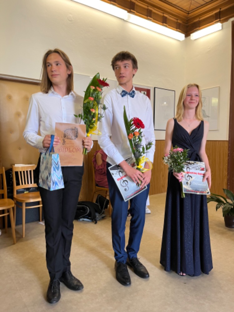 27. června Účinkující David Hrubčík a Michaela Odehnalová (klavír), ze třídy p. uč. Radany Belákové Alexandr Ptáček (kytara), ze třídy p. uč. Jana Fojtů